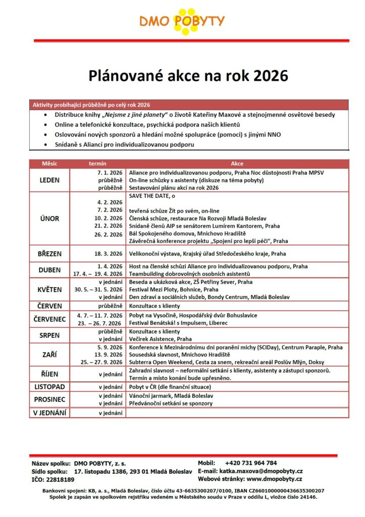 Přispějte na vývoj našich aktivit a služeb a podpořte náš spolek DMO POBYTY. Vaše příspěvky nám pomohou nabízet pobytové služby pro dospělé lidi s dětskou mozkovou obrnou a posílit informační a poradenskou činnost